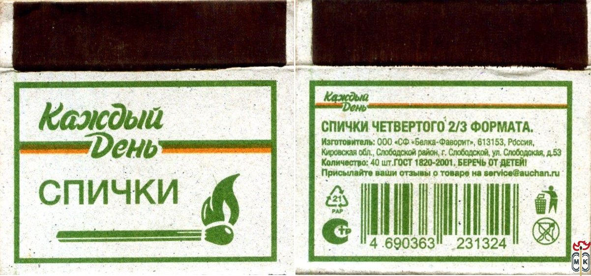 Серию также выпускала: ГЛАВФАНСПИЧПРОМ Г. УФА СПИЧ. Ф-КА "1 МАЯ" ГОСТ 1820-69* Ц. 1 КОП. 1971 Г.