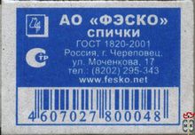 Серию также выпускала: ГЛАВФАНСПИЧПРОМ Г. УФА СПИЧ. Ф-КА "1 МАЯ"