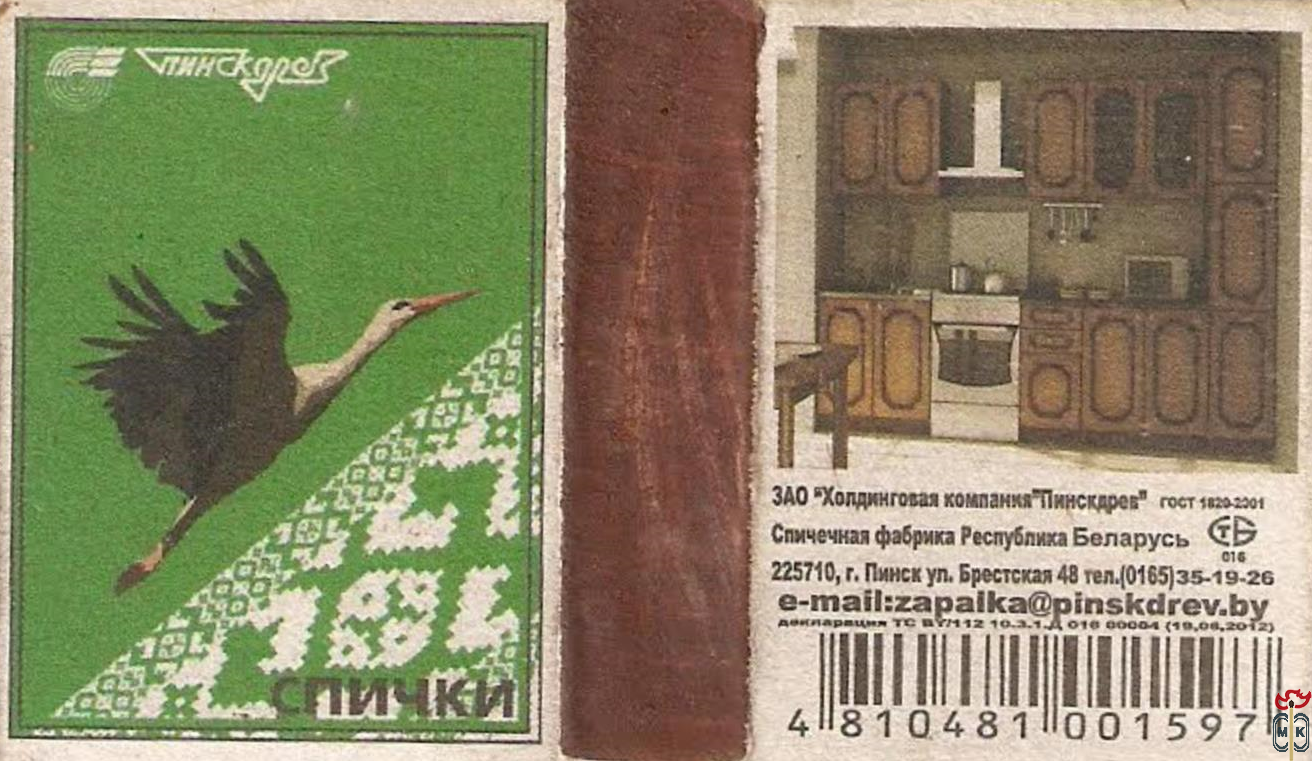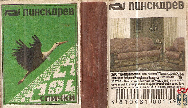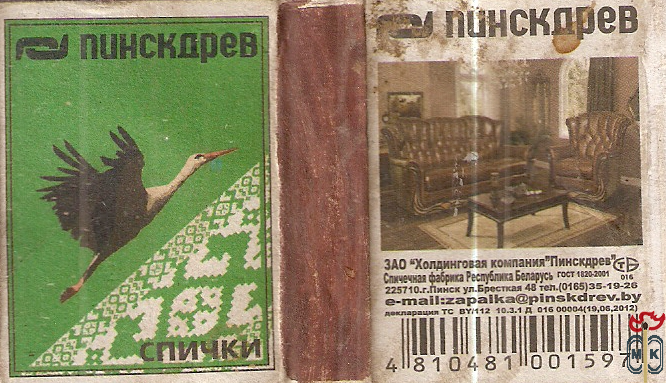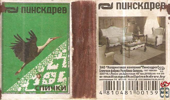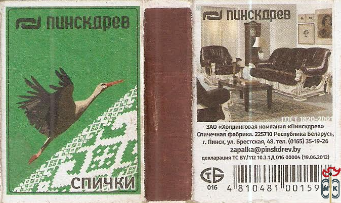 Сигнатура: ЗАО "Холдинговая компания Пинскдрев" спичечная фабрика республика Беларусь,