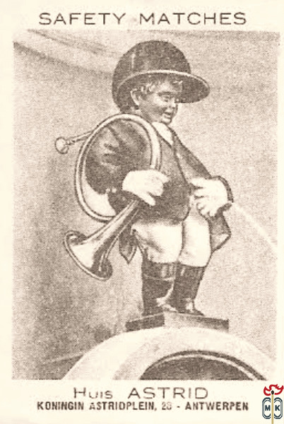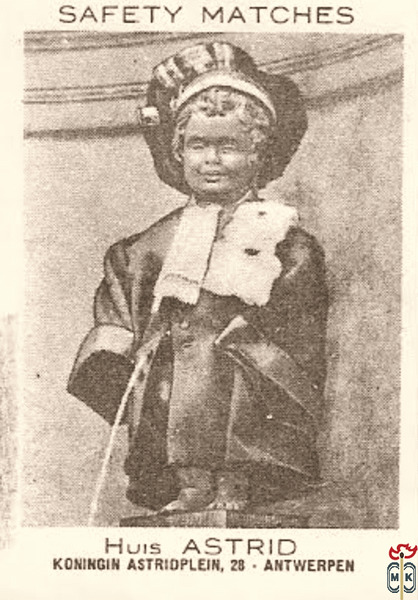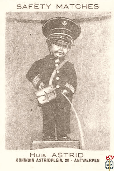 Бронзовая статуэтка-фонтан под названием "Писающий мальчик" (Manneken Pis), установленная в Брюсселе, рядом с Большой площадью (Гранд Плас). Это - одна из самых известных достопримечательностей Бельгии, визитная карточка города. На всех десяти этикетках изображена одна и та же статуэтка в разных нарядах. Традиция наряжать писающего мальчика ведет начало еще с конца XVII века. Сейчас в гардеробе находится около 900 нарядов и их количество ежегодно увеличивается. Также традицией является в праздничные дни заменять струю воды вином или пивом. Статуэтка была изначально установлена еще в XV веке (по некоторым данным с 1388 года), но с тех пор она много раз исчезала и ее заменяли копией. Последний раз статуэтку украли в 1960-е (и также была установлена ее копия).