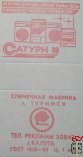 Сигнатура: Спичечная фабрика г. Туринск ГОСТ 1820-85