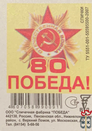 Производитель: спичечная фабрика "Победа"