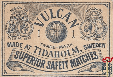Vulcan trade-mark superior safety matches made at Tidaholm, Sweden