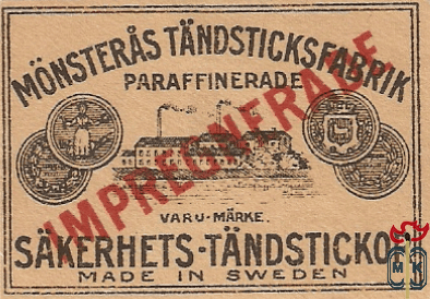 Monsteras tandsticksfabrik paraffinerade varu-marke sakerhets-tandstickor made in Sweden