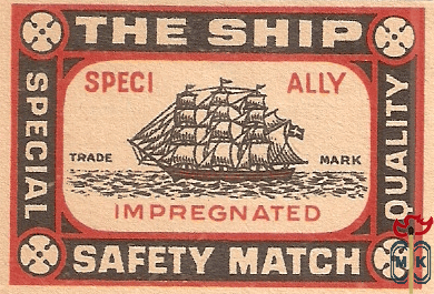 The Ship speci ally impregnated safety matches trade mark made in Sweden A.B.F.S.T.F.