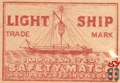 Light Ship trade mark impregnated safety match manufactured in Sweden