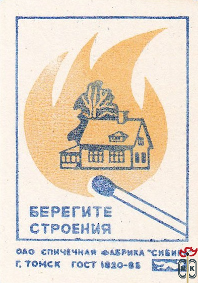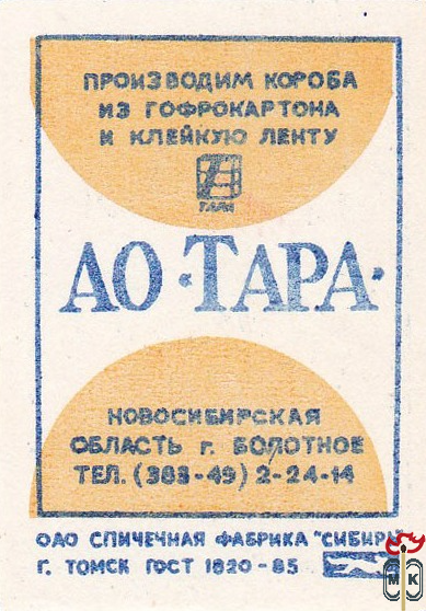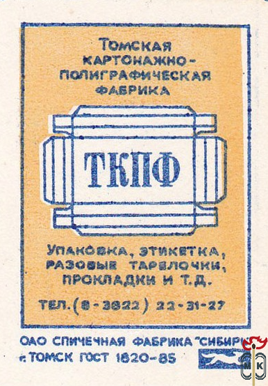 Сигнатура: ОАО "Спичечная фабрика "Сибирь" г. Томск ГОСТ 1820-85