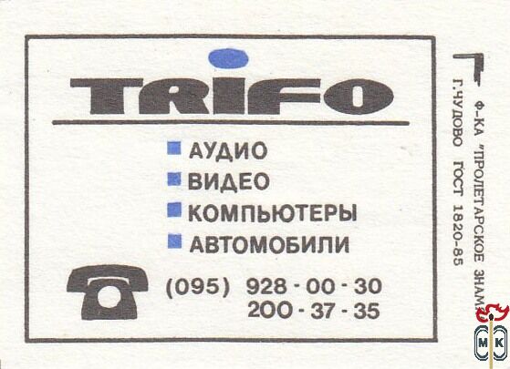Одиночная этикетка. Выпускалась 6-ю фабриками: